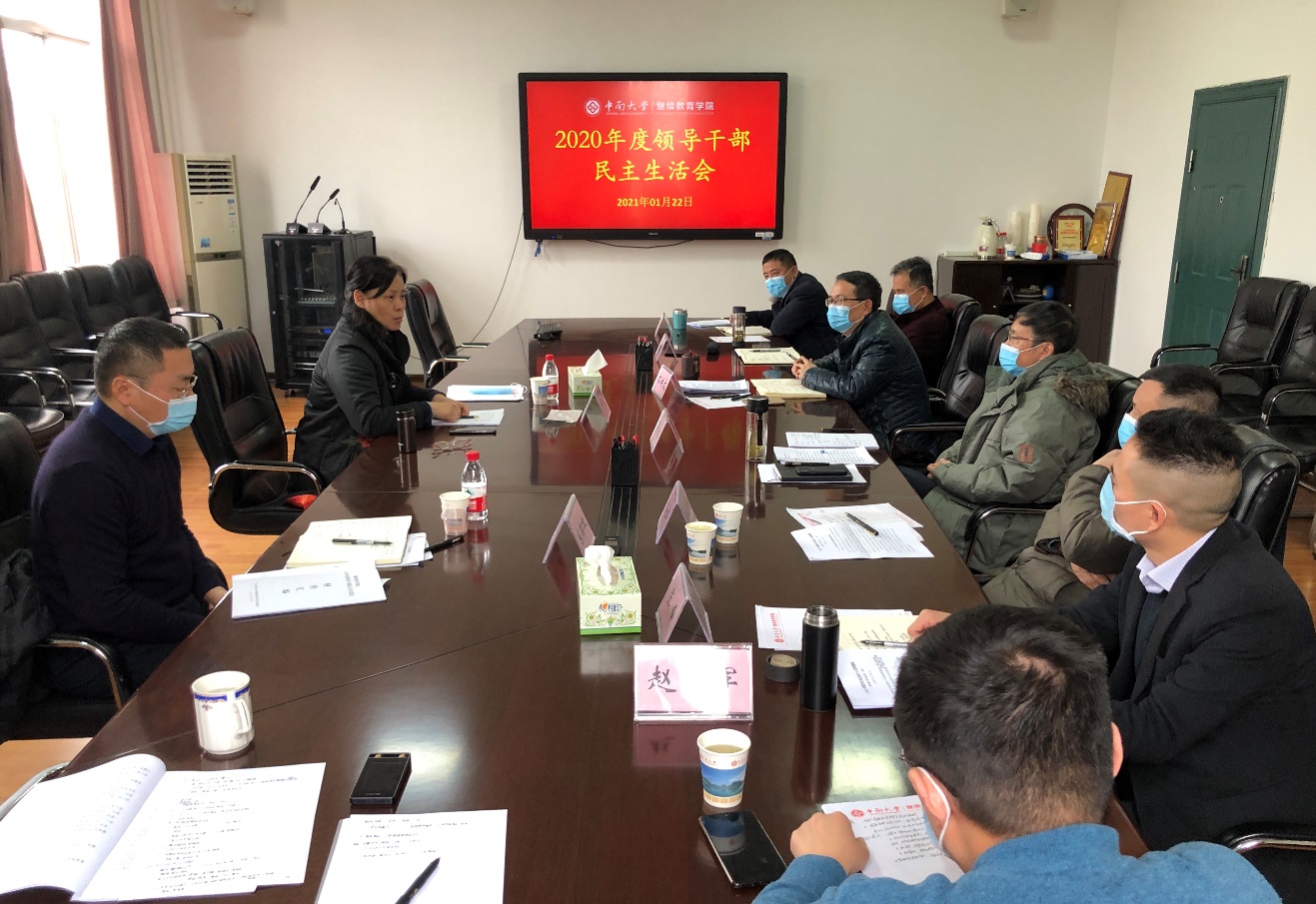 按照学校党委的统一部署,1月22日上午,继续教育学院领导班子围绕“认真学习贯彻习近平新时代中国特色社会主义思想,加强政治建设,提高政治能力,坚守人民情怀,夺取决胜全面建成小康社会、实现第一个百年奋斗目标的伟大胜利,开启全面建设社会主义现代化国家新征程”这一主题召开2020年度领导干部民主生活会。校党委常委、副校长朱学红和校党委督导组成员、副处级纪检监察员宋招权到会指导并进行点评。学院党员领导干部参加会...