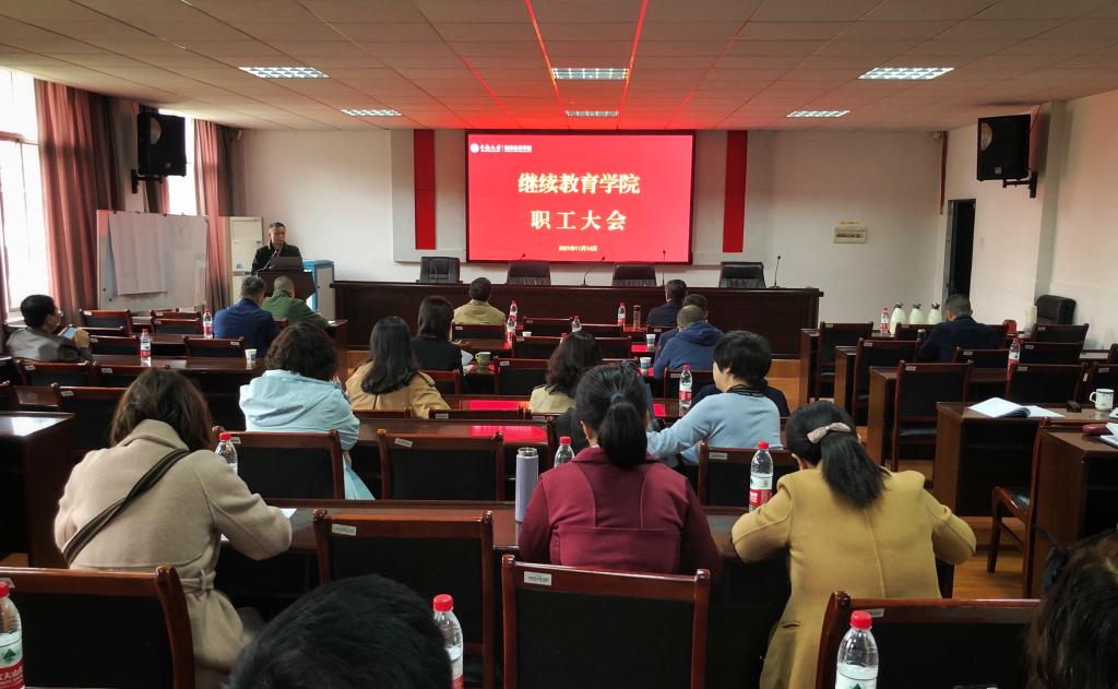 11月16日下午,学院在创业北楼401教室召开全体职工大会,开展职工学习教育,通报学院巡视整改工作情况与领导班子巡视整改专题民主生活会情况,部署管办分离改革后我院的工作重点。学院全体职工参加会议,会议由副院长余社平同志主持。会议首先进行了三个内容的职工学习教育。一是师德师风教育,任雷副院长认真解读了《高校教师职业行为十项准则》并用教育部通报的十个师德师风案例开展警示教育;二是由办公室主任刘向平同志带领...