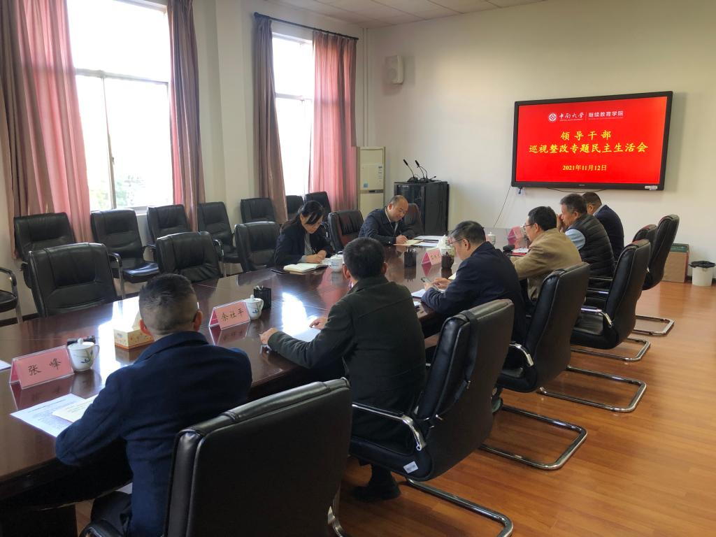 按照学校党委的统一部署,11月12日上午,学院召开领导干部巡视整改专题民主生活会。校党委常委、副校长朱学红和校党委督导组成员、组织部副处级组织员张志宏同志到会指导,学院领导干部吴斌、任雷、余社平、赵军、张峰参加会议,专职组织员彭佳扬列席会议。专题民主生活会由学院党总支书记石共文主持。石共文简要通报了会议准备情况,代表学院领导班子作对照检查发言,并带头做对照检查发言,其他班子成员对照巡视反馈意见认真...