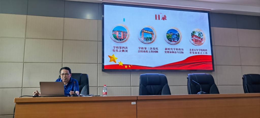 按照学校党委的统一部署,7月4日上午,党总支书记石共文为学院全体职工党员讲授“深入贯彻落实第四次党代会精神,努力建设特色鲜明的世界一流大学”专题党课,学院其他非党员职工列席听课。石书记结合自己参加学校第四次党代会的亲身感受,从“第四次党代会概况、第三次党代会以来的工作成绩、新时代的历史使命和奋斗目标、未来五年的改革发展重点”等四个方面,向与会者宣讲学校第四次党代会的主要精神。他最后强调:全体党员...
