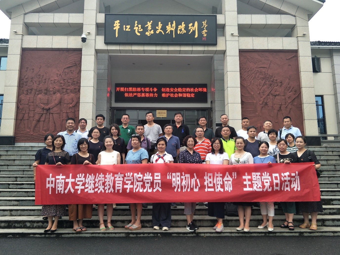 为教育引导广大党员进一步坚定理想信念,为开展“不忘初心,牢记使命”主题教育活动奠定良好基础,继续教育学院党总支于7月5-6日,组织教工党员和退休党员代表等30多名党员赴平江开展“明初心,担使命”主题党日活动。在前往平江的路途上,石共文书记向大家简要介绍了此次活动的目的、意义以及平江起义的历史意义,各支部书记和专职组织员分头组织党员们学习了《中国共产党党员教育管理工作条例》。到达平江起义纪念馆后,学...