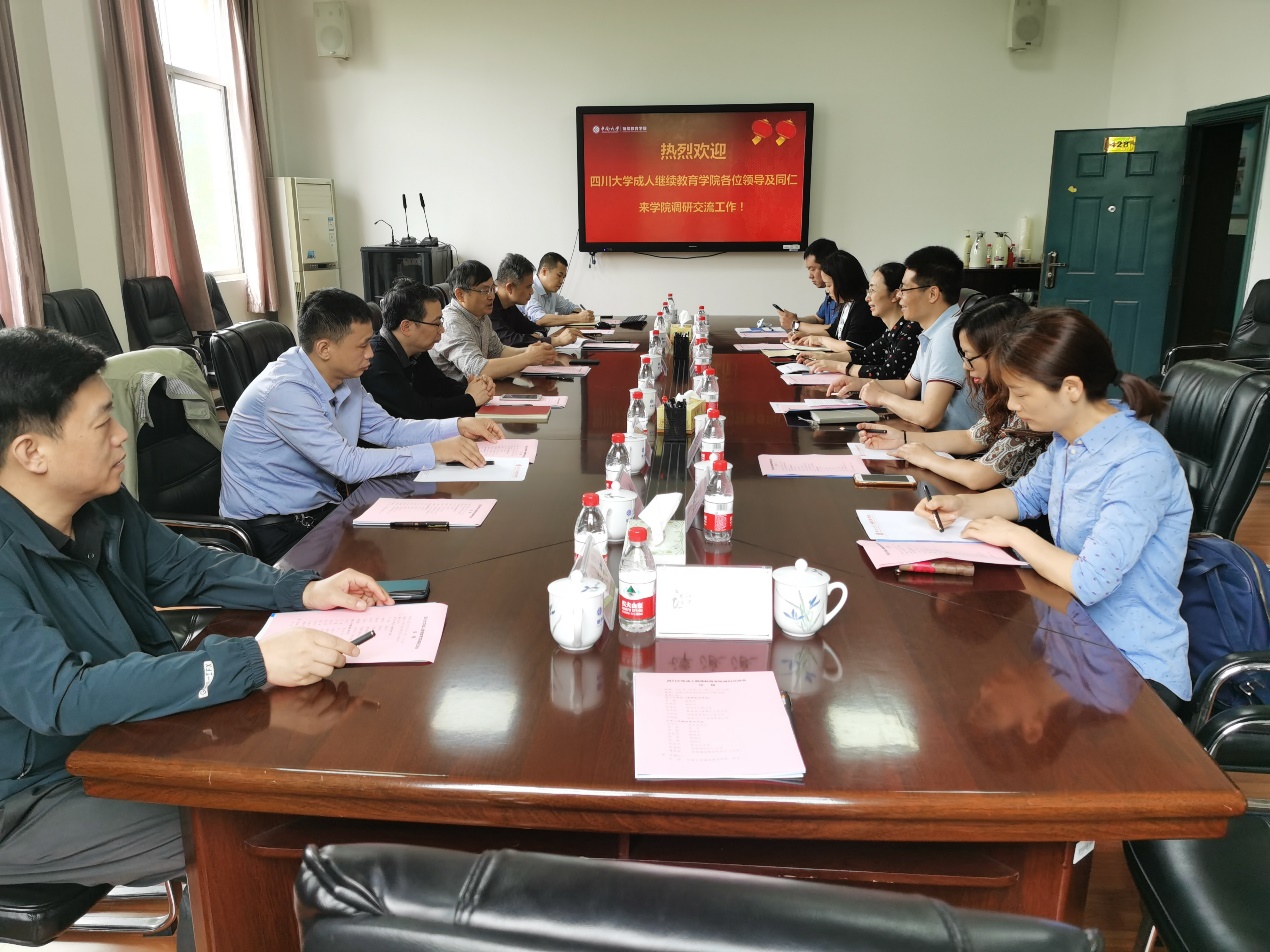 5月26日上午由四川大学成人继续教育学院副院长罗娜、李勇军带队一行6人来我院调研交流,学院党政班子成员及综合办公室、铁路培训中心、高等继续教育研究中心负责人参加交流,会议由吴斌院长主持。四川大学成人继续教育学院罗娜副院长详细介绍了四川大学继续教育机构设置、管理模式、经费分配、基地管理、非学历继续教育转型发展等方面的开展情况。表示yl88858永利集团继续教育研究走在全国高校前列,学院继续教育成功转型,非学历继续...