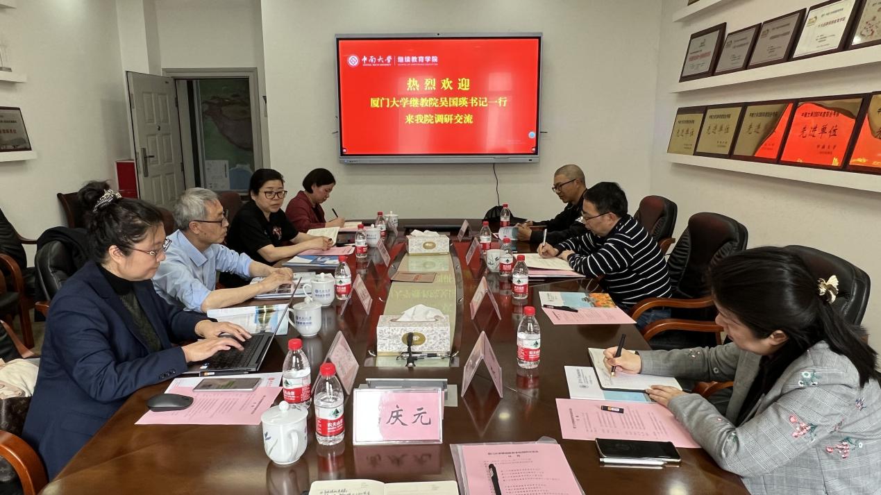 2023年4月12日下午,厦门大学继续教育学院党总支书记吴国瑛一行5人来我院调研交流,学院总支书记石共文接待了厦门大学来访的同行,学院综合办及部分中心的主任参加了调研交流会议。石共文书记简要介绍了学院的基本情况、办学现状、发展愿景和党建工作,吴国瑛书记介绍了厦门大学继续教育学院的学历教育收尾工作、非学历教育等情况。随后,双方人员就党建工作、网络教育收尾工作、非学历教育业务拓展、办学条件、学校管理体制机...