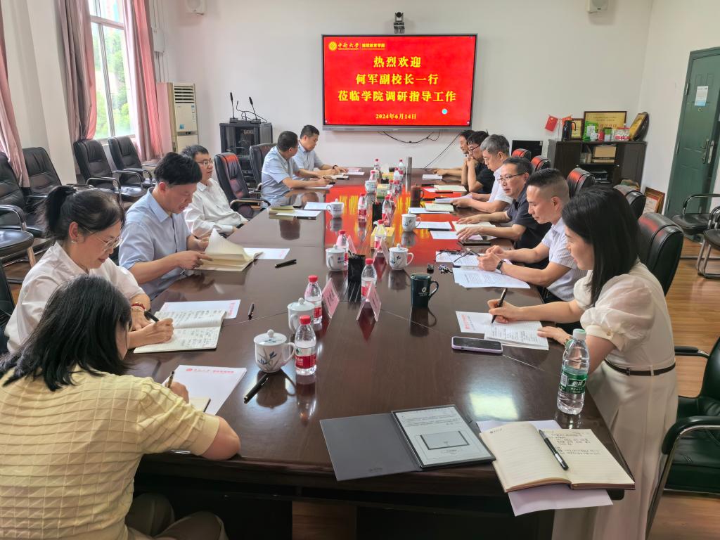 6月14日下午,何军副校长一行到继续教育学院调研指导工作,人事处、计划财务处和继续教育管理办公室等职能部门相关负责人及工作人员参加调研。调研座谈会由学院党总支书记石共文主持,院领导班子成员及综合办公室负责人参加。调研座谈会上,院长李振田从学院非学历教育培训工作的开展情况、面临的实际困难、下一步工作重点和发展举措、请求学校支持的有关建议等方面,进行了全面详细的工作汇报,其他领导班子成员作了补充汇报。...