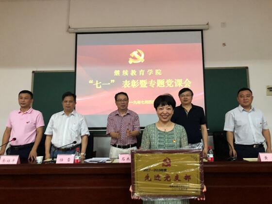 会议由副院长余社平主持。任雷副院长代表学院党总支宣读表彰决定。此次除了表彰获得2017-2019年度校级“先进党支部”的培训教工党支部、校级“优秀共产党员”朱颖同志外,学院党总支还表彰了吴建华、潘辉英、黎日新、姚晓初、高庆元、谭浪浪、刘向平、鲁劲等8位院级“优秀共产党员”。与会领导为先进集体和优秀个人颁发了奖牌和荣誉证书。