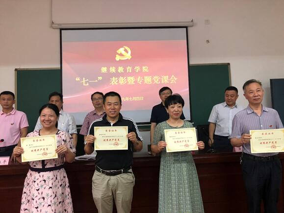 7月4日上午,继续教育学院党总支“七一”表彰暨专题党课会在铁道学院创北楼举行。本院全体在职党员、退休老党员代表等40余人参加。
