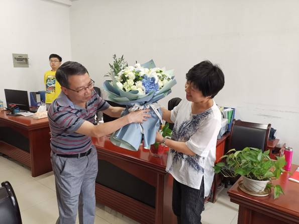 随后,石书记一行来到校级优秀共产党员朱颖同志办公室,向其献上鲜花,表达学院领导对其获评校级先进的祝贺,鼓励她继续发挥示范带头作用,为学院的转型发展做出更大贡献。