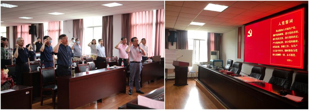 大会在雄壮的国歌声中拉开帷幕,首先由党总支书记石共文领誓,全体党员庄严地举起右手,面向鲜红的党旗重温入党誓词。铿锵有力的宣誓声,不仅表达的是党员对党的忠诚,也让大家再次体会到作为一名共产党员的责任、使命感。