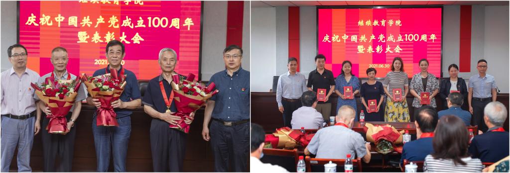 会议表彰了校级、院级先进集体和优秀个人。党总支委员任雷副院长宣读了学院党总支关于表彰2019-2021年度先进集体和优秀个人的决定。刘向平同志获得学校“优秀共产党员”荣誉称号;培训教工党支部获学校“先进基层党组织”荣誉称号;朱海东、朱颖、吴玉霜、何芳、陈奇先、彭佳扬、鲁劲、黎日新等8位同志获得学院“优秀共产党员”荣誉称号。学院领导为党支部、个人获奖者颁发了奖牌和荣誉证书。会议希望受表彰的先进集体和优秀个人珍惜荣誉、再接再厉,号召各党支部和全体共产党员学习榜样,为党的教育事业和学校的“双一流”建设再立新功!