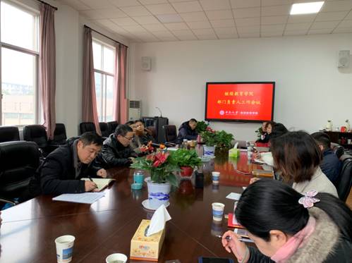 本次会议是两个学院合并、新领导班子到任后第一次部门负责人工作会议,首先吴斌院长和余社平副院长分别介绍了原两个学院的参会人员,并详细介绍了原继续教育学院和网络教育学院的基本情况。
