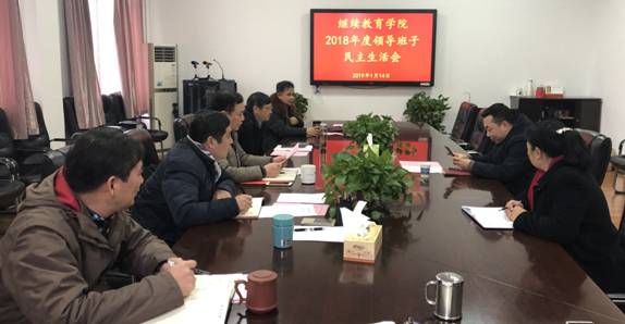 2019年1月14日下午,在创业北楼428会议室,继续教育学院处级以上党员领导干部围绕“强化创新理论武装,树牢‘四个意识’,坚定‘四个自信’,勇于担当作为,以求真务实作风坚决把党中央决策部署落到实处”的主题,召开了民主生活会。学校组织部副部长罗永忠到会指导,学院全体处级以上党员领导干部参加此次会议,会议由学院党委书记成琼文同志主持。