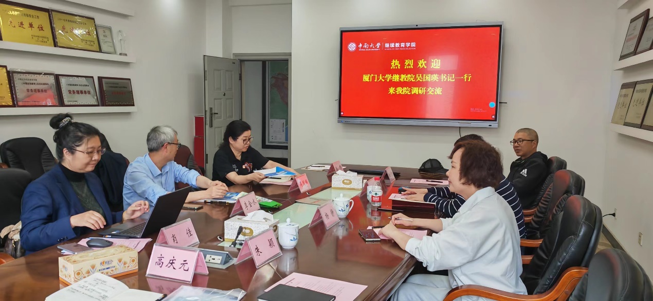 2023年4月12日下午,厦门大学继续教育学院党总支书记吴国瑛一行5人来我院调研交流,学院总支书记石共文接待了厦门大学来访的同行,学院综合办及部分中心的主任参加了调研交流会议。