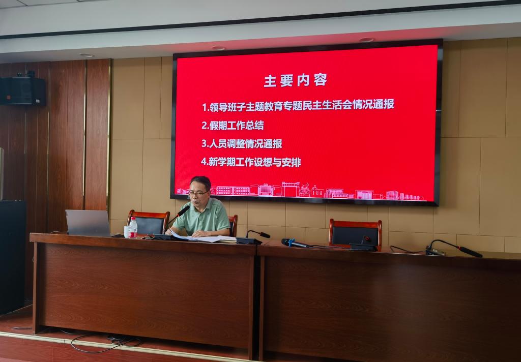 石书记首先通报了学院领导班子主题教育专题民主生活会的情况,随后对假期的非学历教育培训、值班和主题教育等工作进行了简要总结,并对学历继续教育扫尾任务完成后相关人员的工作调整情况进行了通报。最后,他聚焦学院非学历教育培训主业,代表领导班子对新学期的工作进行了部署:一要加强队伍建设,大力提升人员素质与能力,为学院事业高质量发展提供队伍支撑;二要改善办学条件,多措并举补短板强弱项,努力提高非学历教育培训的服务保障能力;三要健全体制机制,不断提升内部治理能力,着力防范化解办学安全与廉政、廉洁风险;四要积极主动作为,多渠道拓展教育培训业务,下功夫凝练品牌与特色,努力完成年度目标任务,并为来年积蓄一批教育培训项目。