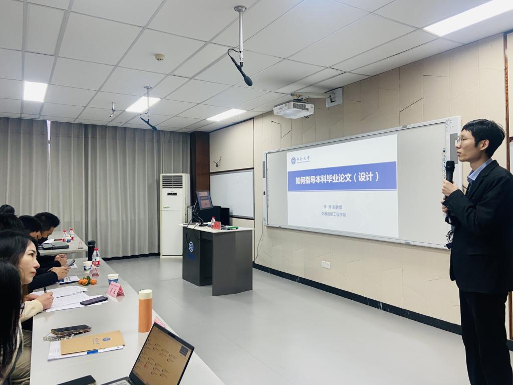▲中南大交通运输工程学院副教授李烨主讲“如何指导本科毕业论文(设计)”