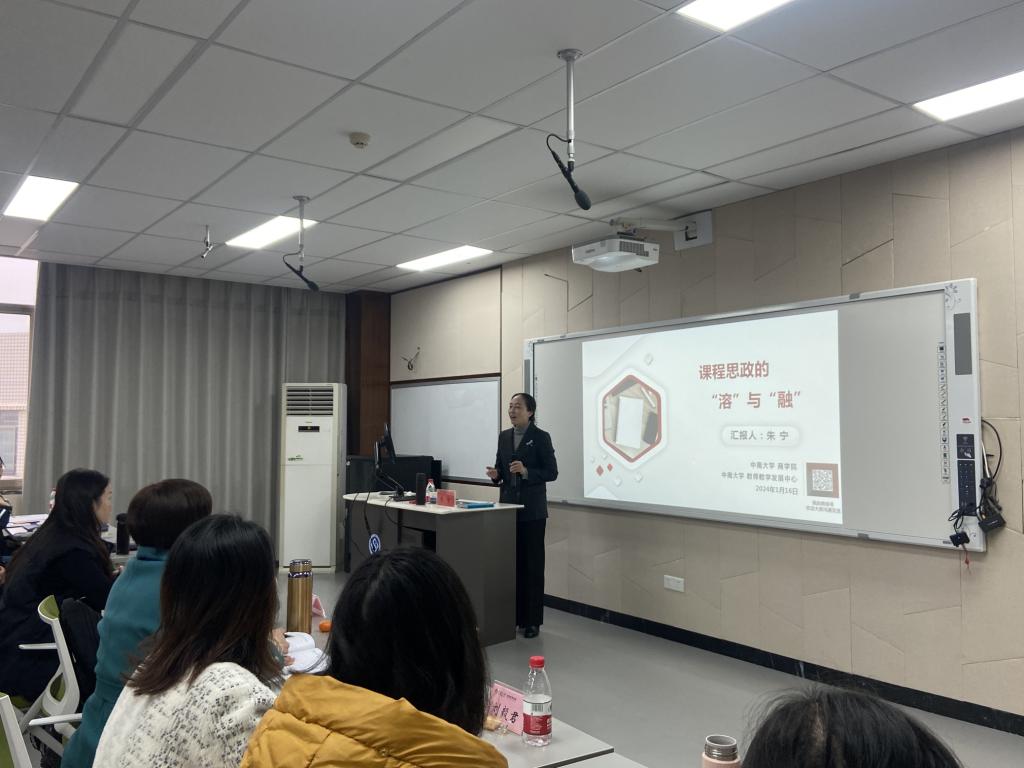 ▲yl88858永利集团商学院副教授朱宁主讲“课程思政的‘溶’与‘融’”